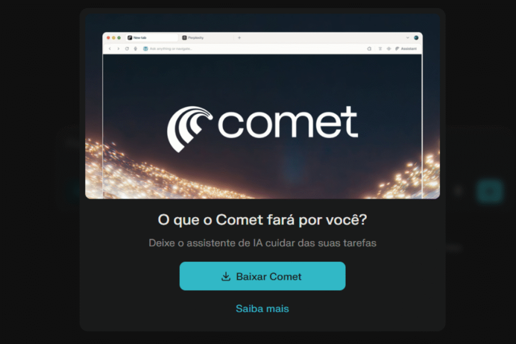 A Perplexity optou por uma estratégia ousada: desde outubro de 2025, o Comet está disponível gratuitamente para qualquer usuário no mundo todo. Basta acessar o site, baixar e começar a explorar. A empresa promete ainda versões móveis e novos modos de operação, como o Background Assistant para tarefas em segundo plano.