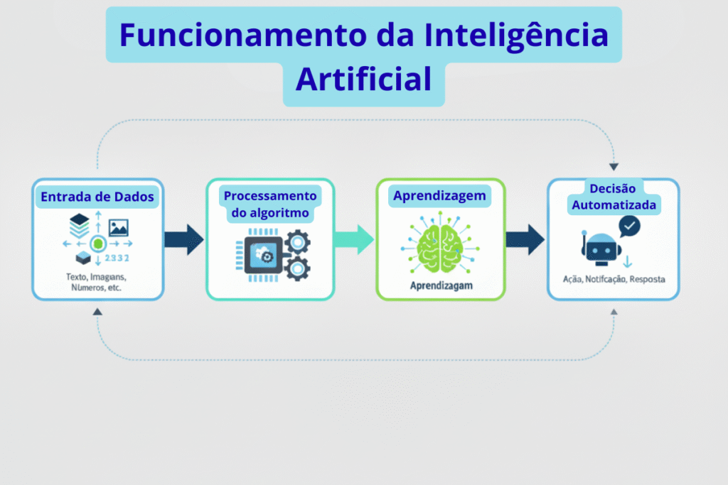 Ao contrário do software tradicional, a IA coleta, armazena e analisa imenso volume de dados para identificar padrões, interpretar imagens, compreender textos, sons e prever acontecimentos futuros — tudo em questão de segundos.